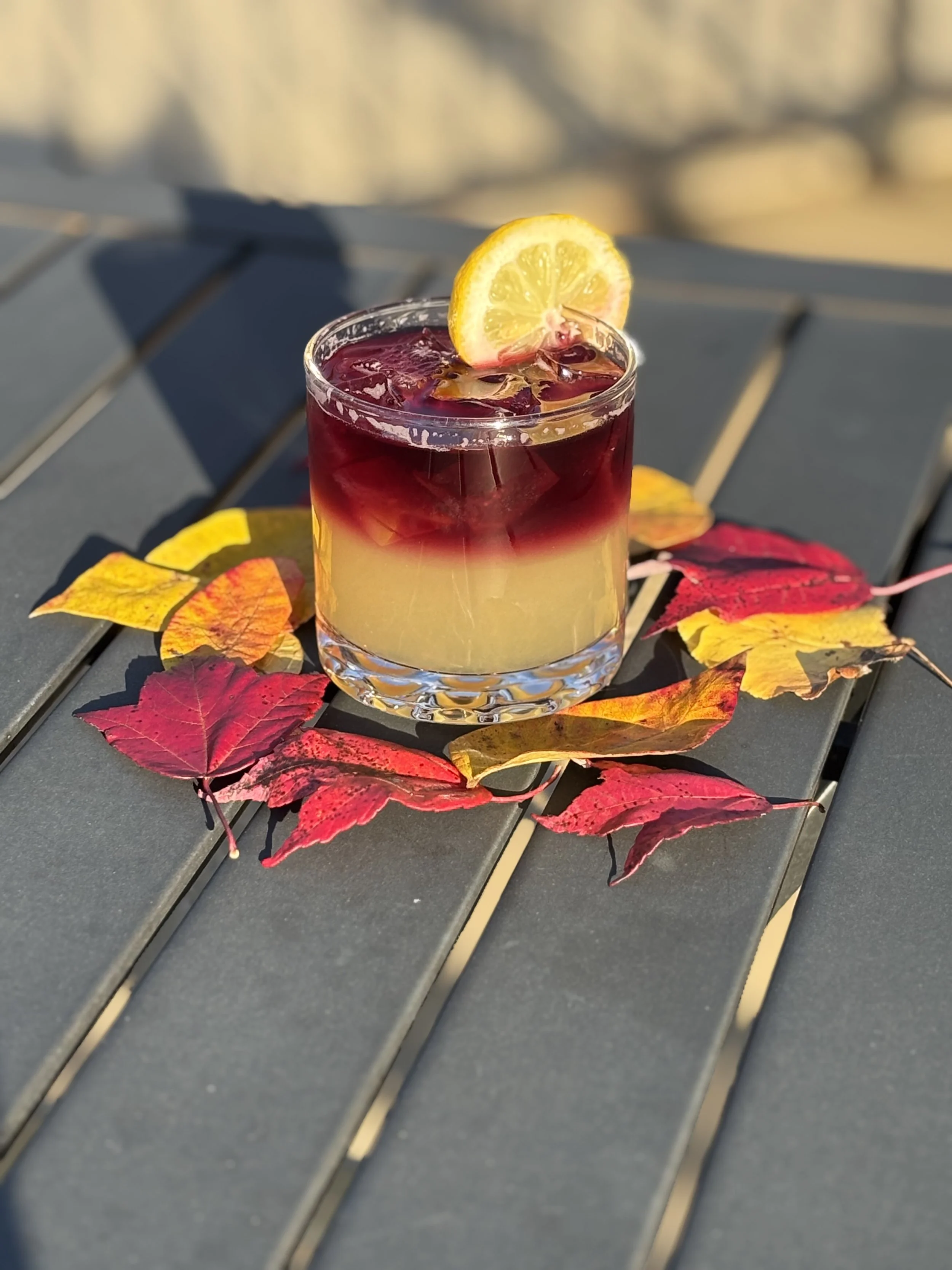 Tito’s vodka, creme de cassis, apple pucker, lemon, simple